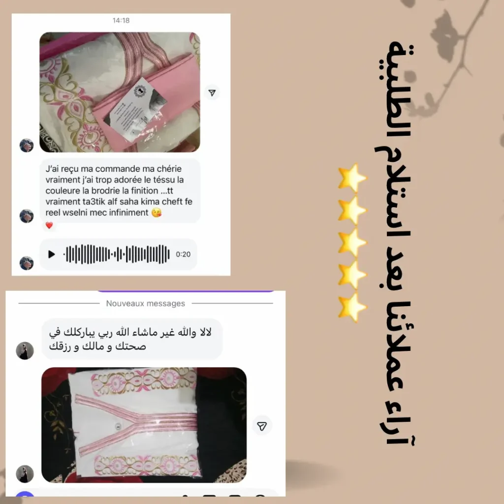 🎀 الطلب مضمون إذا كاين مشكل في القفطان، تواصلي معانا ونلقاو لك الحل اللي يرضيك.